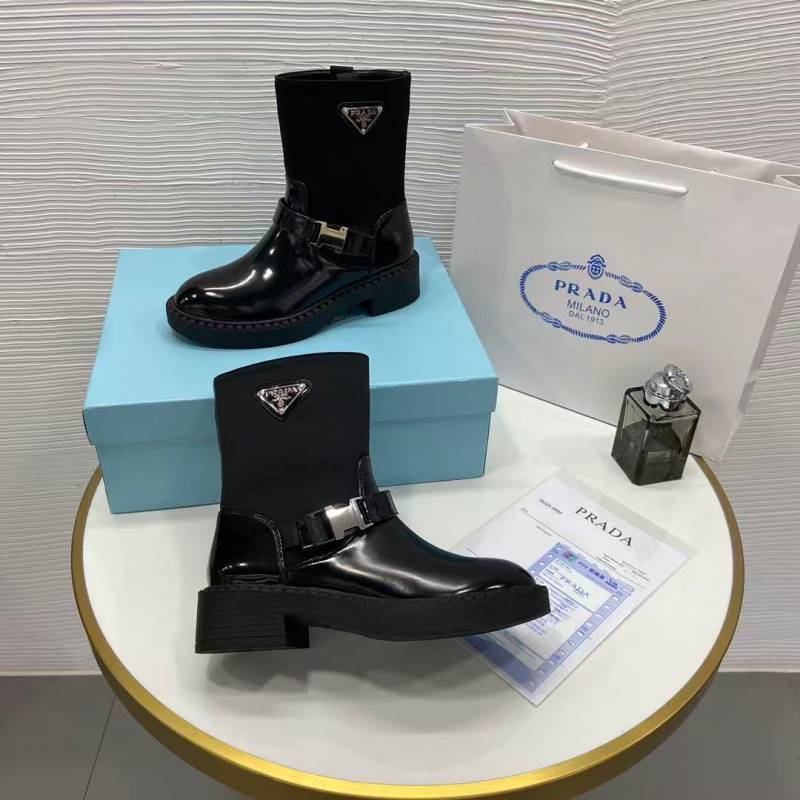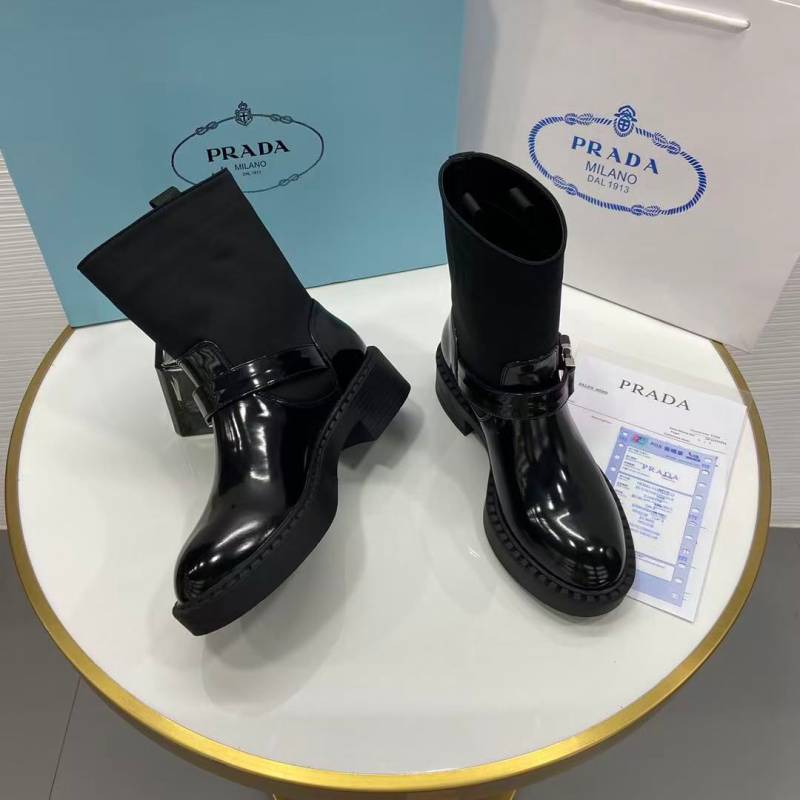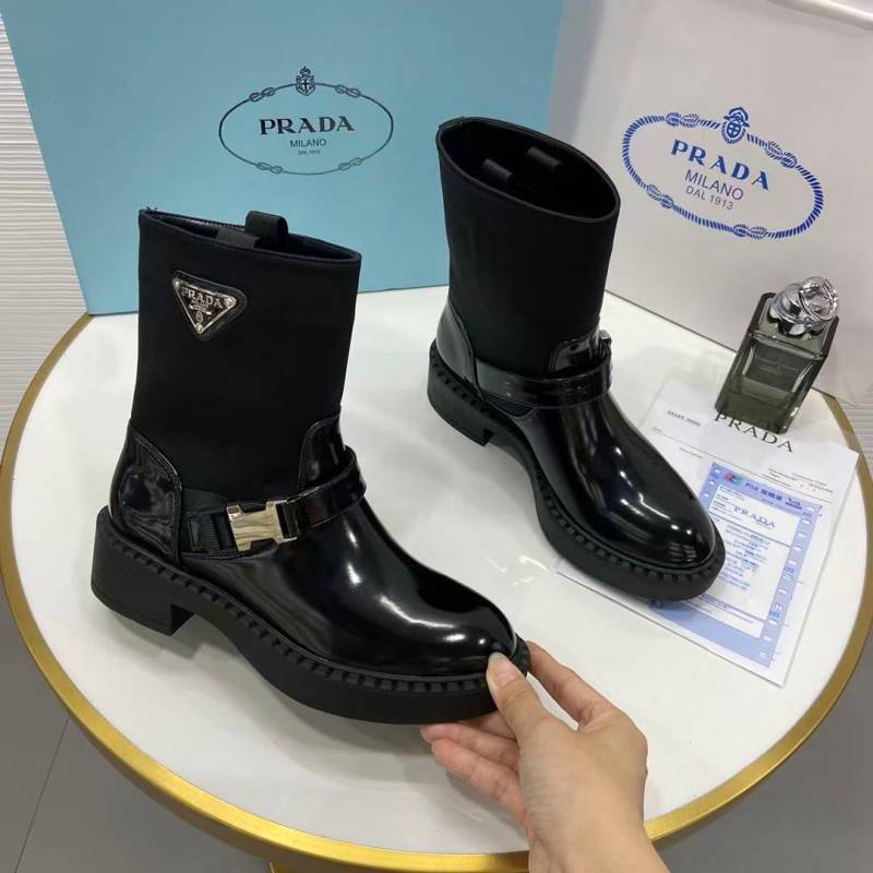 Praada brushed leather and Re-Nylon booties.