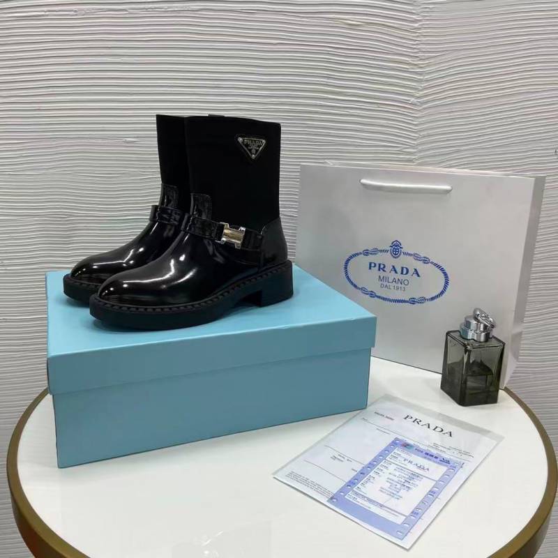 • Praada brushed leather and Re-Nylon booties.