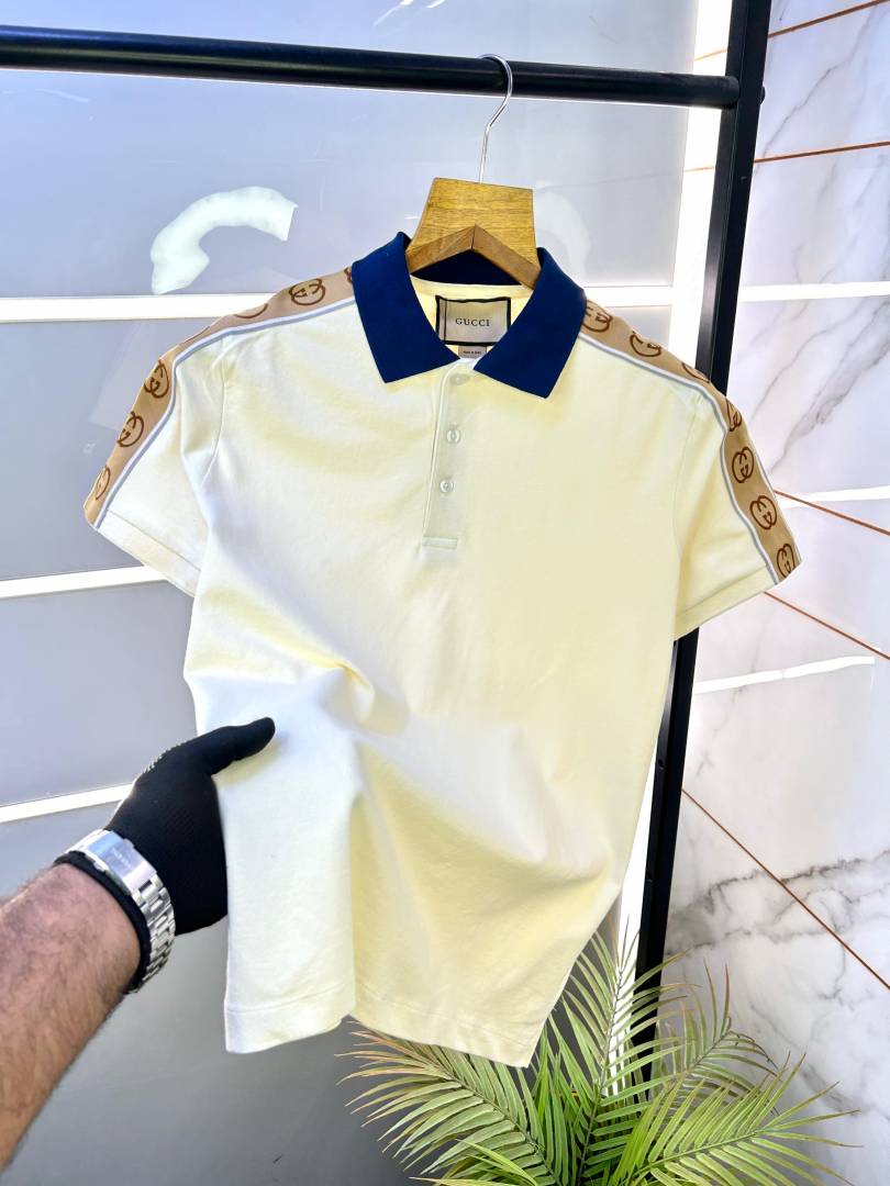 Sale Gucc i Beige Imported Polo Neck Premium Collar T-shirt F2915-BE